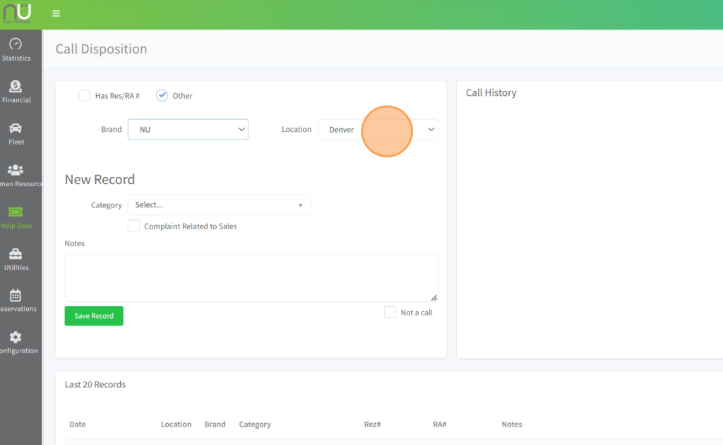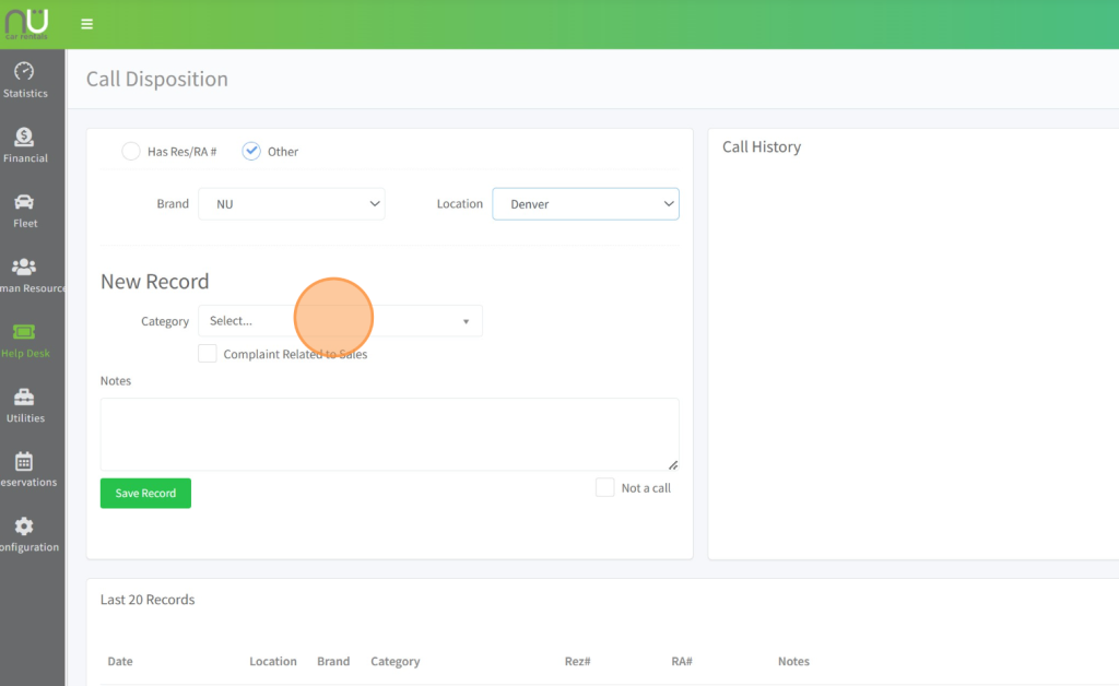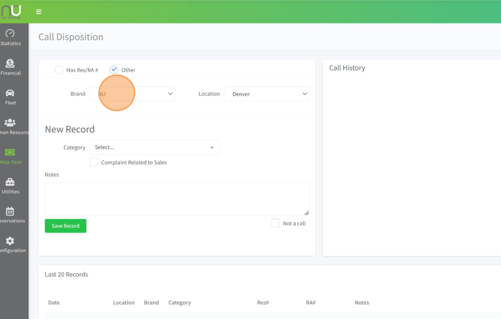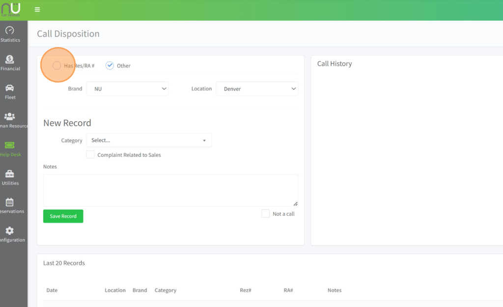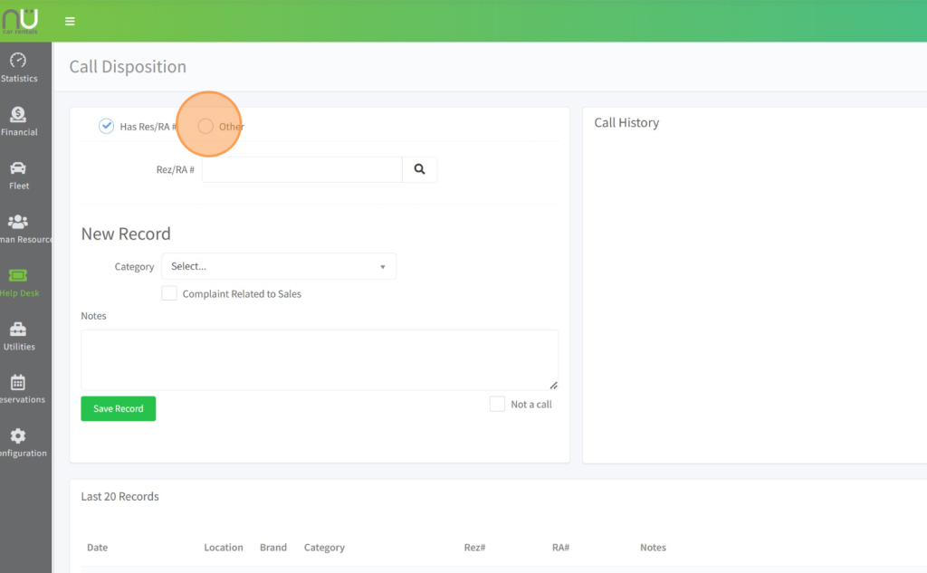If there is no Reservation or RA#, Click “other“. Ex. Third Party Website calls, NÜ Car, Ghost Calls etc.