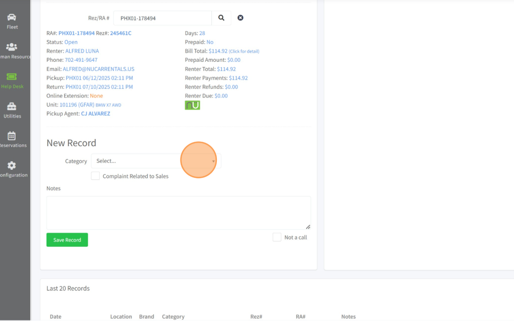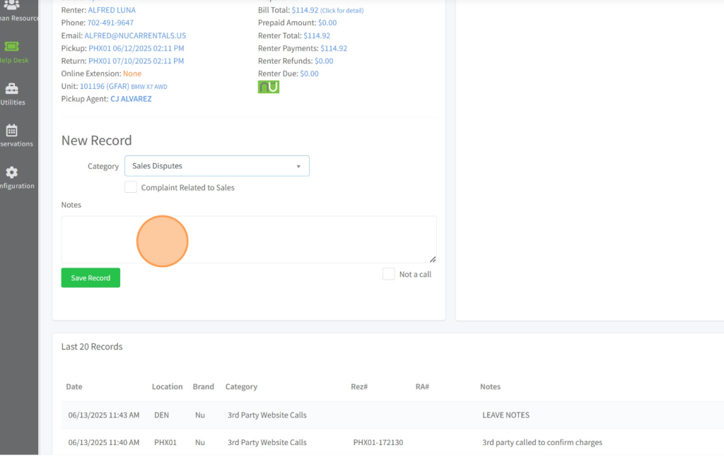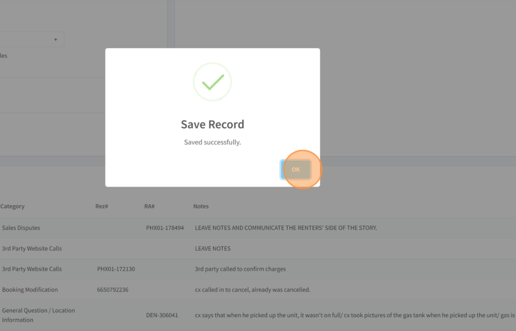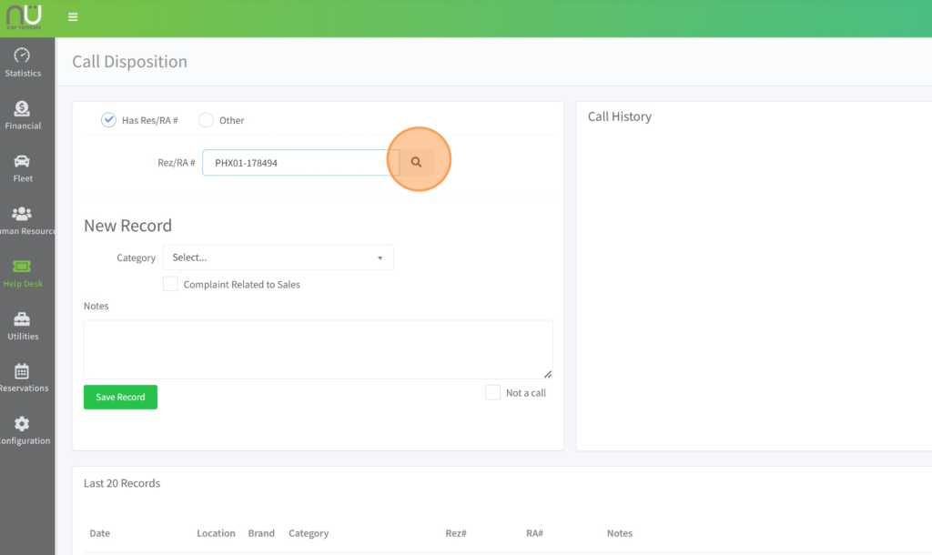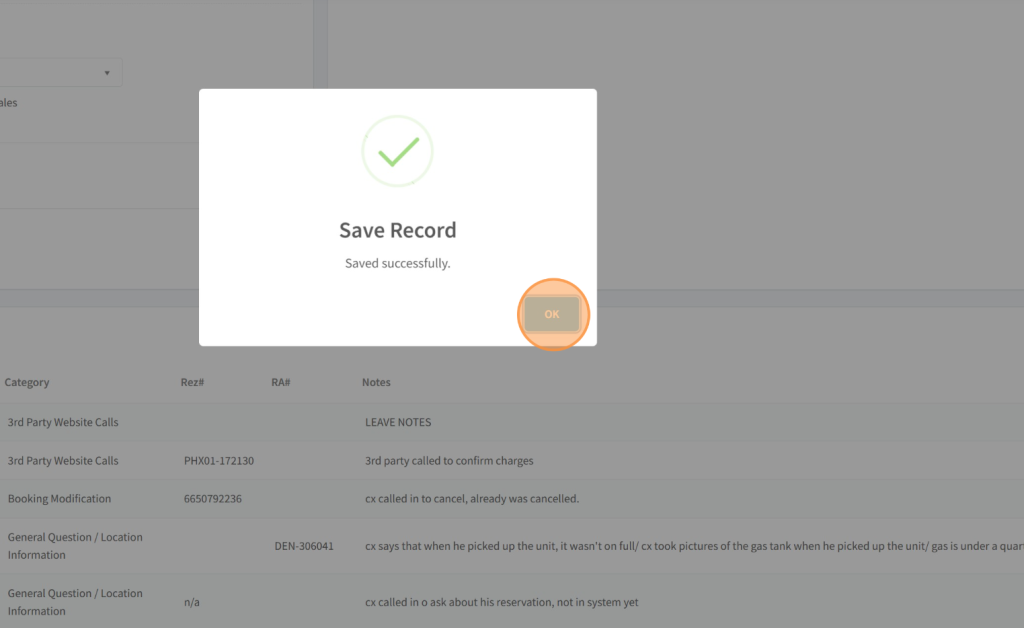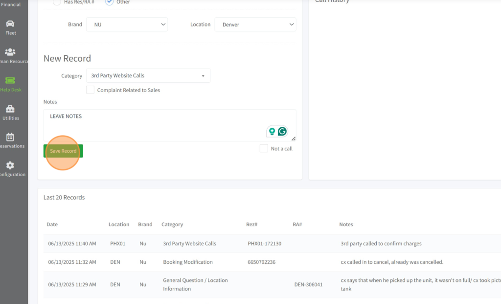 If there is no Reservation or RA#, Click “other“. Ex. Third Party Website calls, NÜ Car, Ghost Calls etc.
