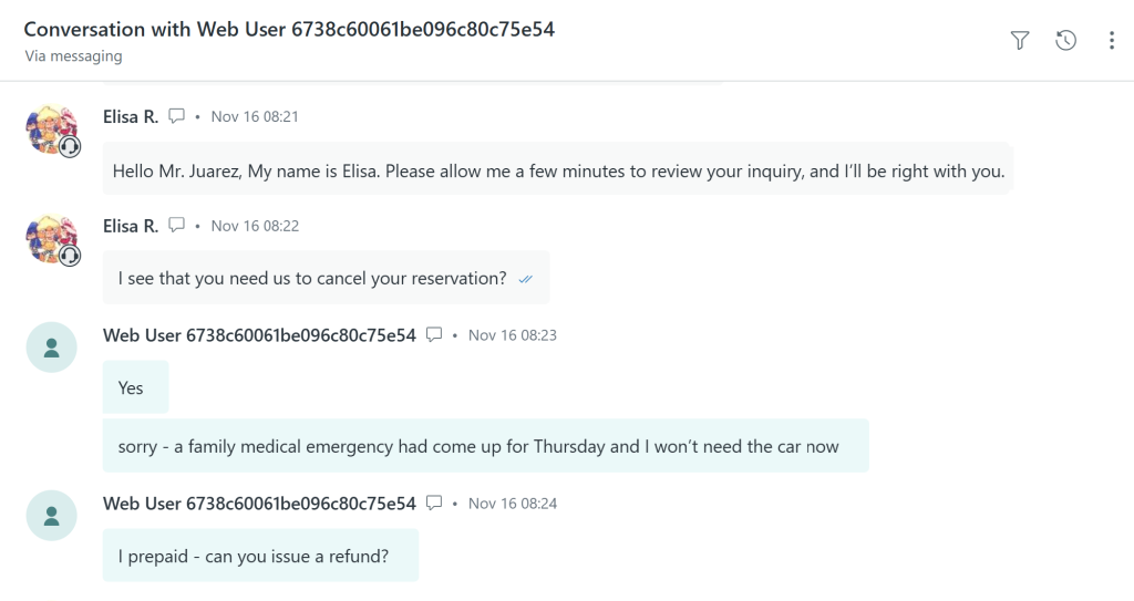 Summarize the reason for the transfer in your response to the renter. Similar to the example below where Elisa R. confirmed that the renter is asking to cancel the reservation.