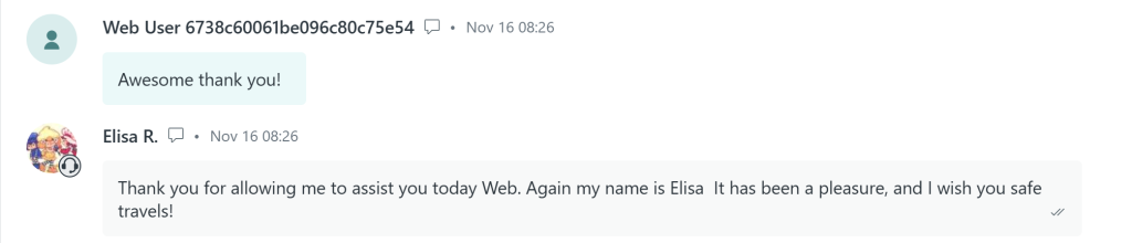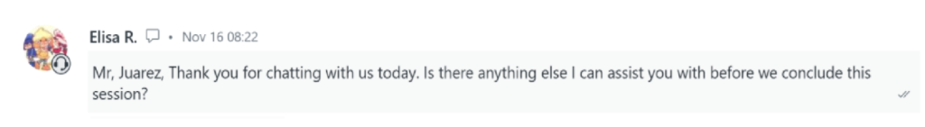 Finally, close the chat window after sending the Chat Closing Statement macro.