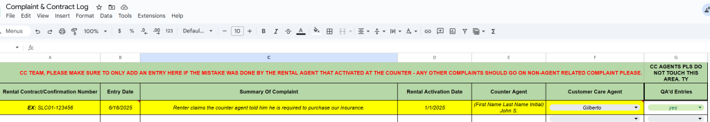 Finally, get back with the renter to advise and close the case with a fair resolution based on the interaction, and add your notes. Remember to always input the complaint if the agent is wrong or lacked on some areas using the “Complaint Tracker” Sheet, so it can be reported for improvement.