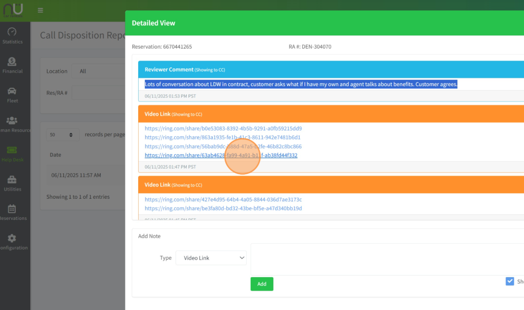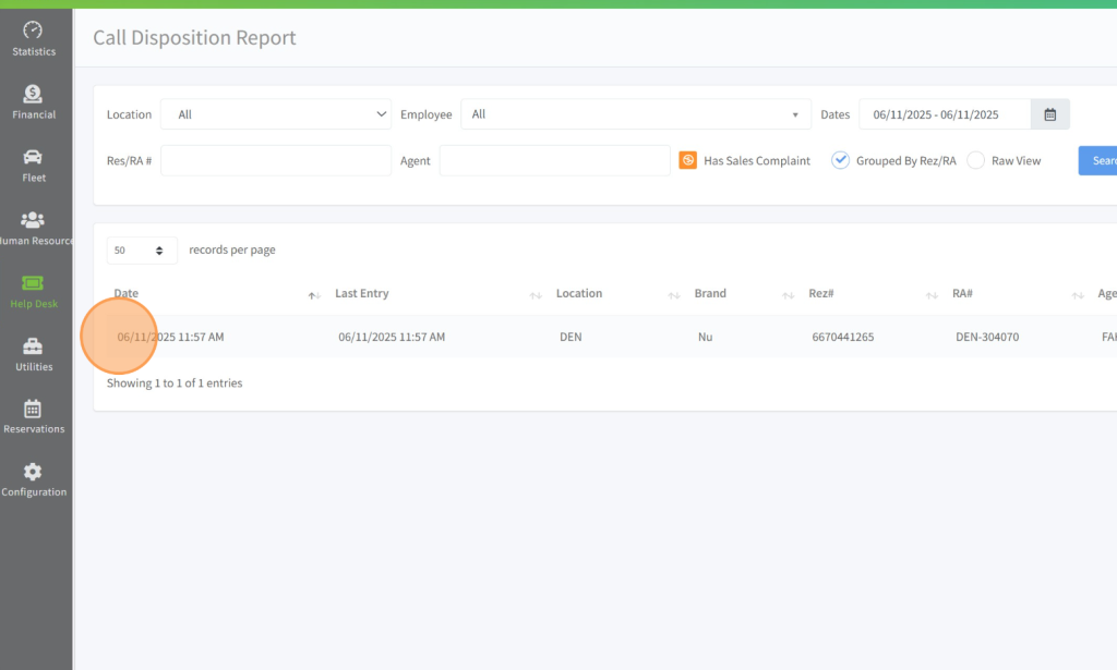 Navigate to https://backoffice.nucarrentals.us/default Click Help Desk – Call Disposition Report
